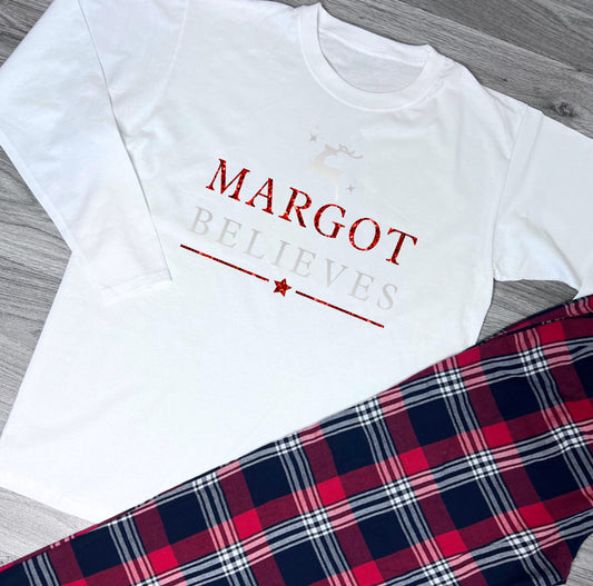 PERSONALISED FAMILY BELIEVE CHRISTMAS PYJAMAS - RED TARTAN