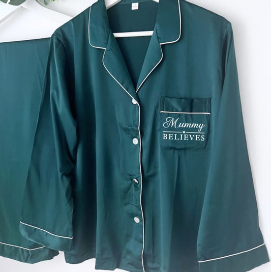 ADULTS BELIEVE SATIN CHRISTMAS PYJAMAS
