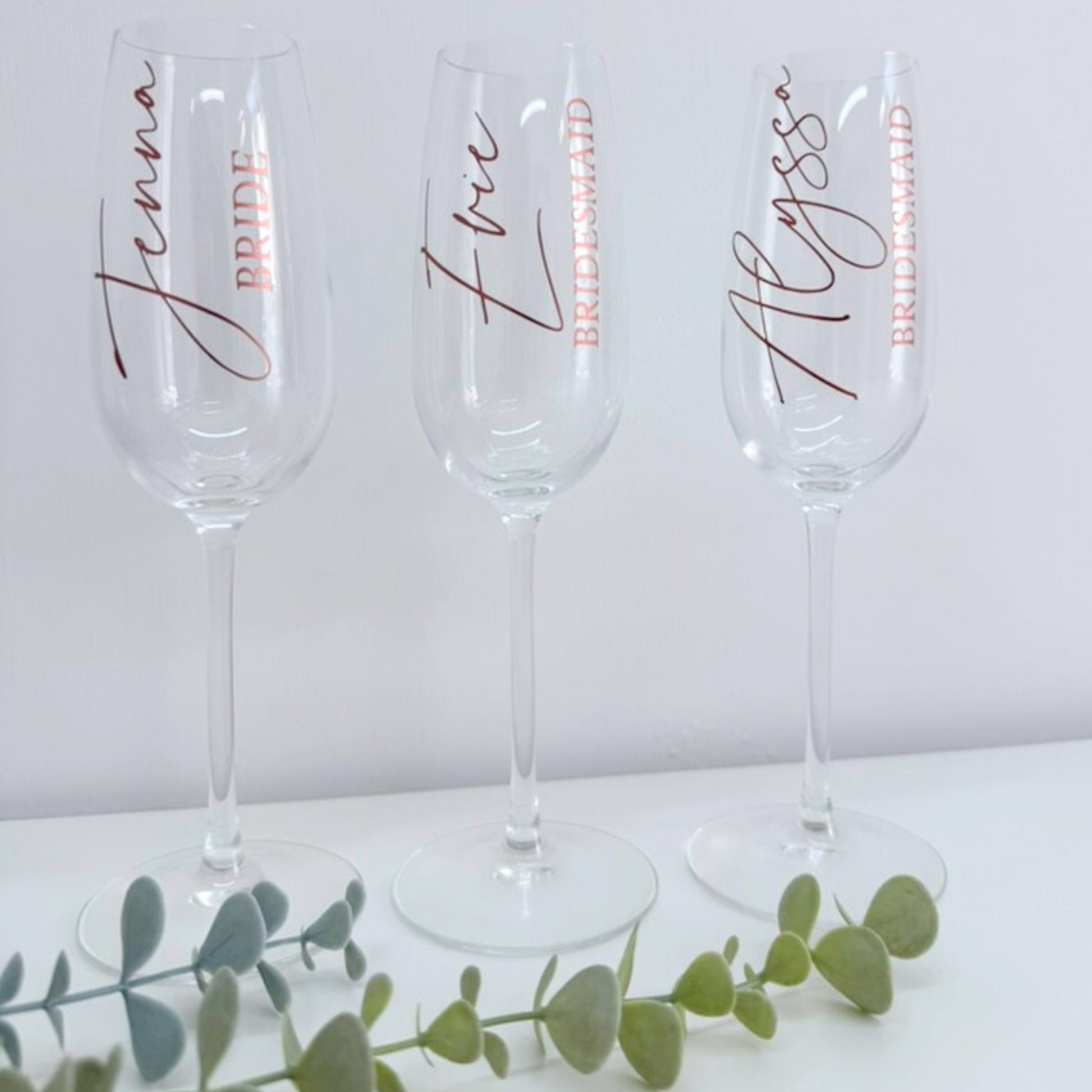 Make every toast unforgettable with my Personalised Bridal Party Champagne Flutes. Designed to add a touch of elegance and sentimentality to your wedding celebrations, each flute features the recipient’s name and title, making them a cherished keepsake for your bridal party. Perfect for engagement parties, bridal showers, rehearsal dinners, and the wedding day itself, these custom flutes ensure that every celebration is unique and memorable.