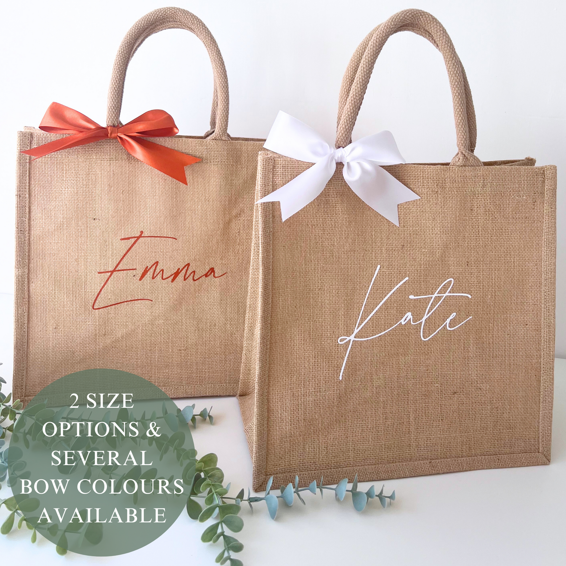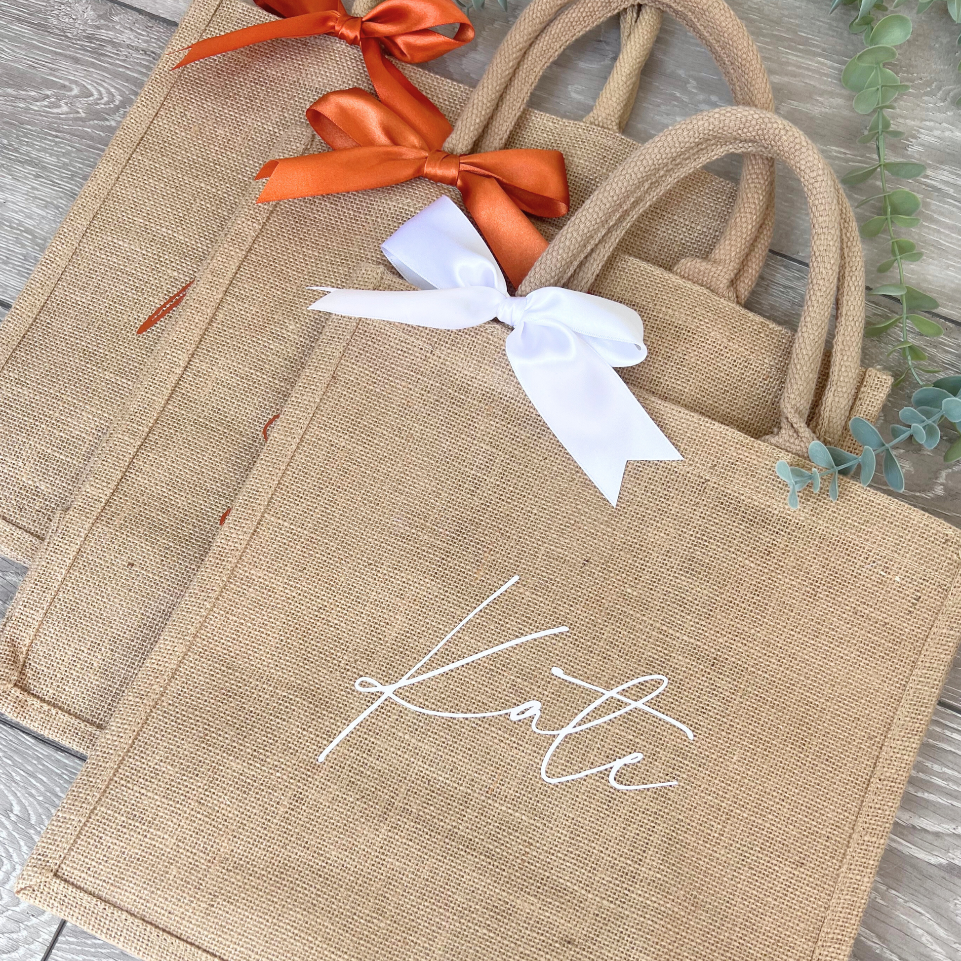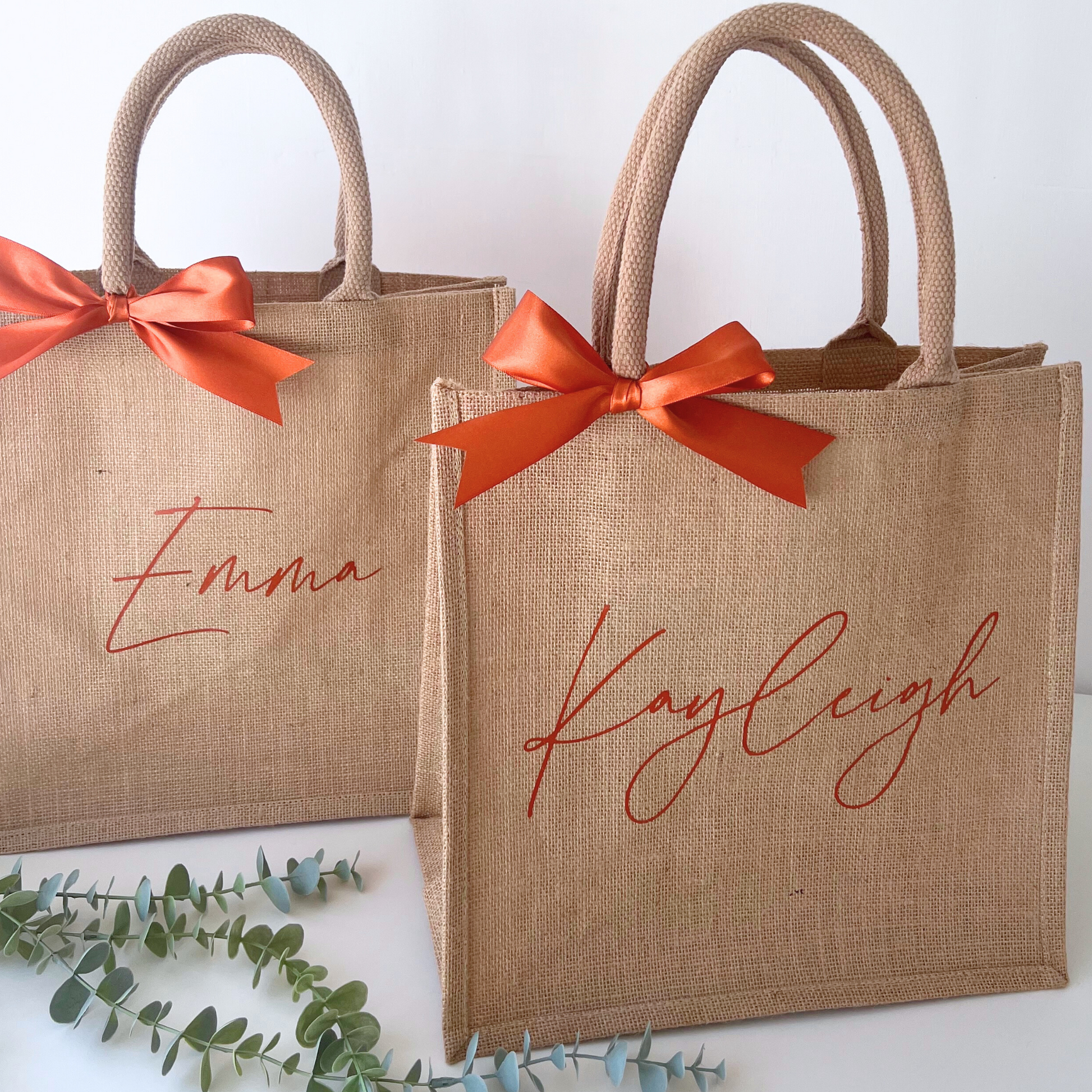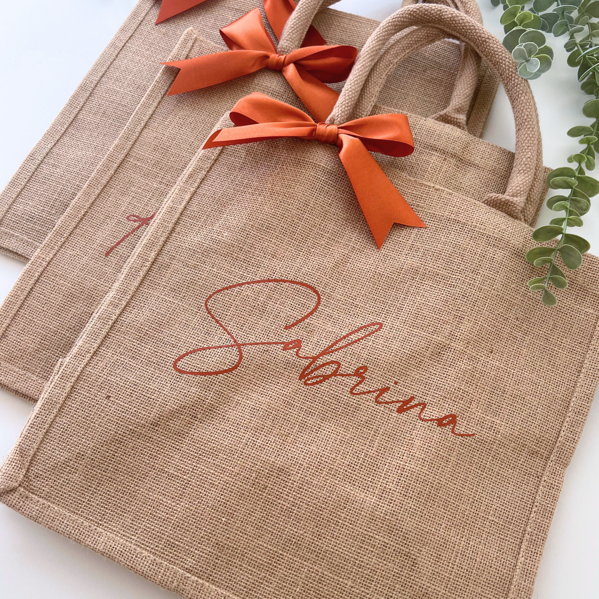 Made from laminated jute/cotton canvas, each custom bag will become a unique keepsake that your friends will cherish long after the celebrations end.